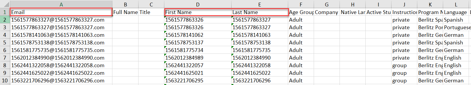 As a result of the scenarios described above, the student records will be anonymized with random letters and numbers in the name and email fields. Examples of students' anonymized data in Management Portal are shown below.